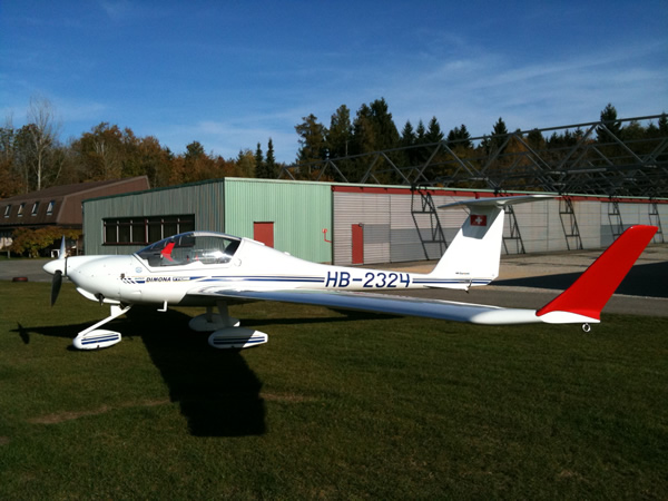 Une part (1/7) du Super-Dimona HK36TTC, HB-2324 stationné à La Côte (LSGP),